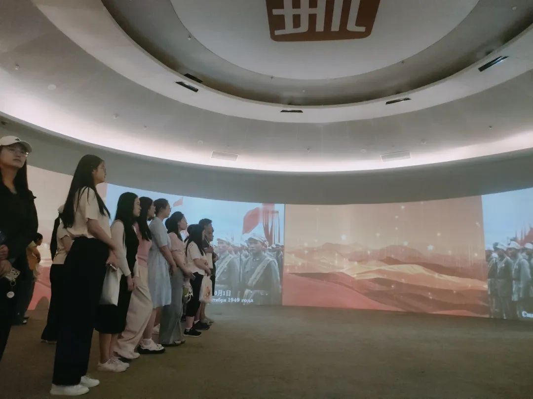 馆内的最后一篇章讲述了党和国家的光辉历程,同志们共同观看开国大典珍贵历史影像,在一系列图文资料与历史典籍中缅怀革命先烈的丰功伟绩,铭记党的初心和使命,立志在对历史的深入思考中汲取智慧、走向未来。
