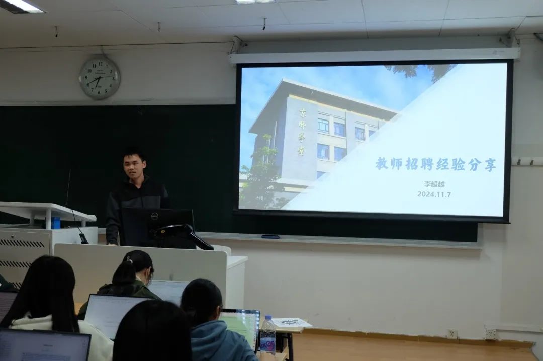 李超越同志聚焦于教师招聘,为在场的各位同志在初高中生物教师的求职上提供经验与借鉴,分享内容主要包括教招基本流程、面试选择与策略,并详细介绍了不同地区的教招特色。