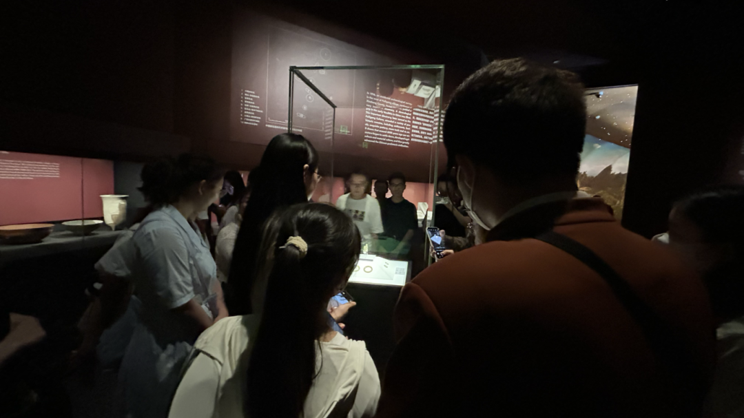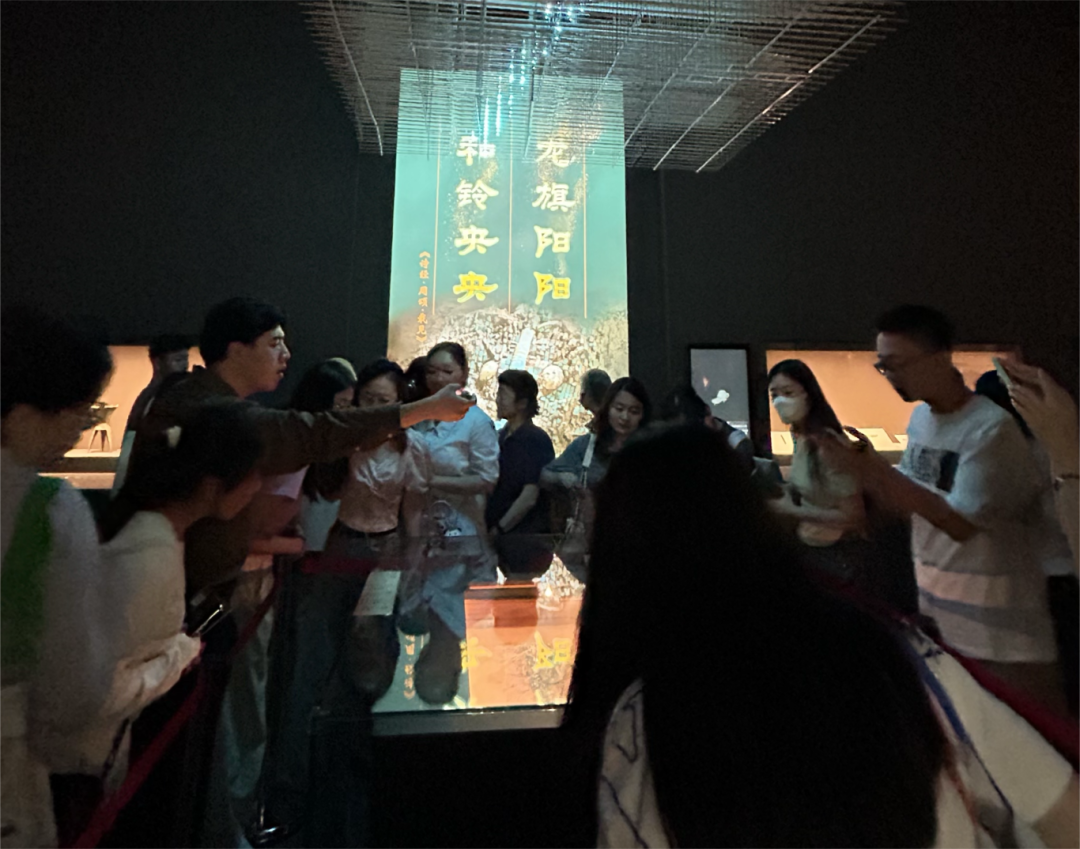 在讲解员生动的讲述下,通过智慧展柜、OLED透明显示屏、裸眼3D和场景模拟等技术,中国考古博物馆的镇馆之宝和稀世珍器在支部成员们眼前活了过来。通过触摸来自3000多年前的陶片和模仿古人敲响编钟,支部成员们不仅用眼睛看到了历史的形状,还用指尖感受到历史的温度,用耳朵聆听历史的音韵。