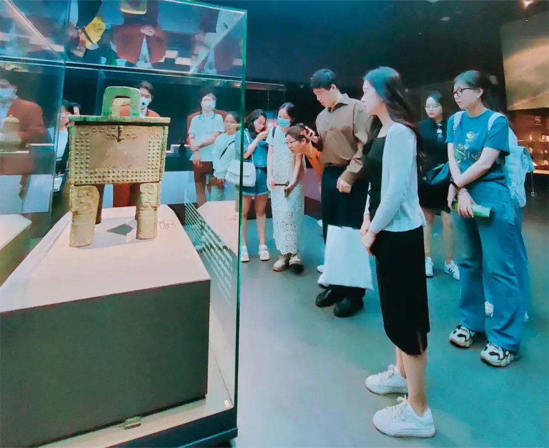 在三楼的“宅兹中国”展厅,支部成员们争相观赏“超级国宝”——二里头遗址出土的大型绿松石龙形器,对商周时期青铜器、玉器和象牙制品的精美工艺赞叹不已,从青铜礼器上的铭文中回望了3000多年前的王朝风采。