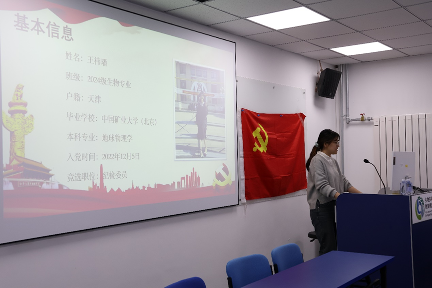新当选的支部委员会委员召开了第一次支委会,选举陈昱臻同志为支部书记,王雨彤同志担任组织委员,林颖欣同志担任宣传委员,王祎璠同志担任纪检委员。