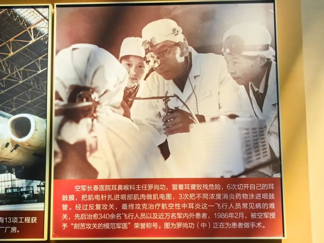 为了攻克航空性中耳炎这一难题,空军长春医院耳鼻喉科主任罗尚功不顾个人安危,冒着耳聋致残的危险,6次切开自己的耳鼓膜,把肌电针扎进咽部肌肉做肌电图,3次把不同浓度消炎药物涂进咽鼓管,经过反复攻关,最终在1981年成功攻克治疗航空性中耳炎的难关,先后治愈340余名飞行人员以及近万名军内外患者。1986年2月,被空军授予“刻苦攻关的模范军医”荣誉称号。他为航空性中耳炎的治疗做出了巨大贡献,也推动了我国航空医学的发展。