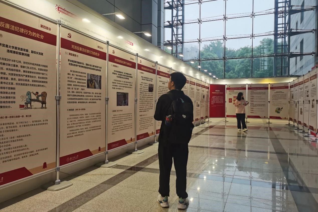 为贯彻落实习近平总书记关于党纪学习教育的重要讲话和重要指示精神,帮助学校广大党员干部师生深化对《中国共产党纪律处分条例》的掌握和理解,按照学校党委有关党纪学习教育工作部署,2024年6月7日,冰球突破豪华版官方网站乐育党支部与教育学部2023级研究生第九党支部共同参观“学纪 知纪 明纪 守纪——2024年党纪学习教育专题展览”。