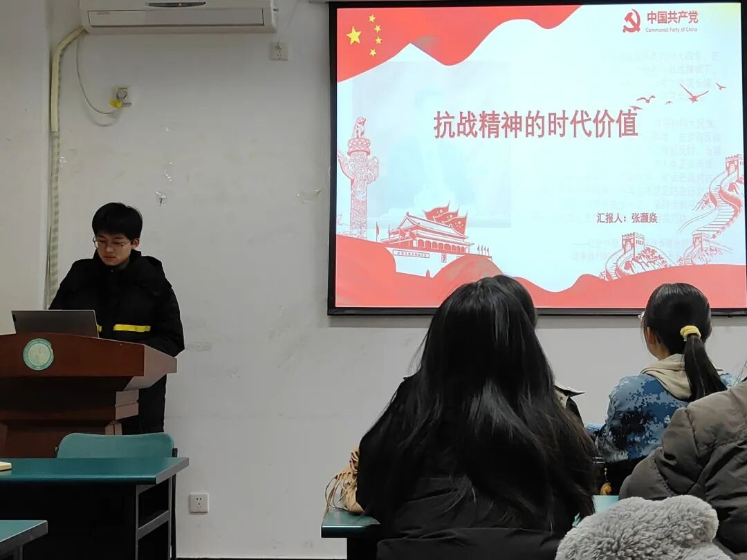 张欣瑶同志分享了汤飞凡团队在艰苦环境中研制青霉素的科学抗战故事,强调了知识分子的担当与韧性对当前学习科研的鼓舞。许瑞天同志回顾了高校西迁的“文军长征”,特别是西南联大师生徒步千里的壮举,阐释了家国情怀和奋斗意志在个人成长中的指导作用。其他同志也踊跃发言,如王纪阳同志结合淞沪会战谈坚持精神,杨雨鑫同志通过赵尚志将军的事迹强调信仰力量,裴雯玉同志以杨靖宇将军和张庆功的故事启示理想信念,大家一致认为抗战精神是宝贵财富,需融入日常实践。