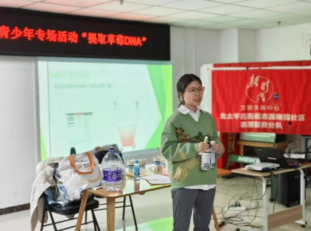 春意盎然的3月,北太平庄街道志强南园社区也迎来了一场充满趣味的科学探索之旅。3月29日,乐育党支部携手社区亲子家庭,共同开展“探索生命奥秘,亲子共探科学”科普微课活动。通过“草莓DNA提取”实验,孩子们在动手实践中揭开生命的秘密,感受微观世界的奇妙。