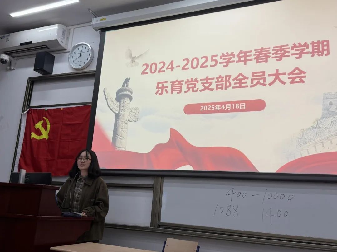 2025年4月18日20:00,冰球突破豪华版官方网站乐育党支部于生二教室成功召开2024-2025学年春季学期全员大会。支部全体党员、预备党员和积极分子共计54人参加。会议由支部书记周雯睿同志主持,会议主要包括支部现有制度介绍、深入贯彻中央八项规定精神学习教育启动部署和支书讲党课三个环节。