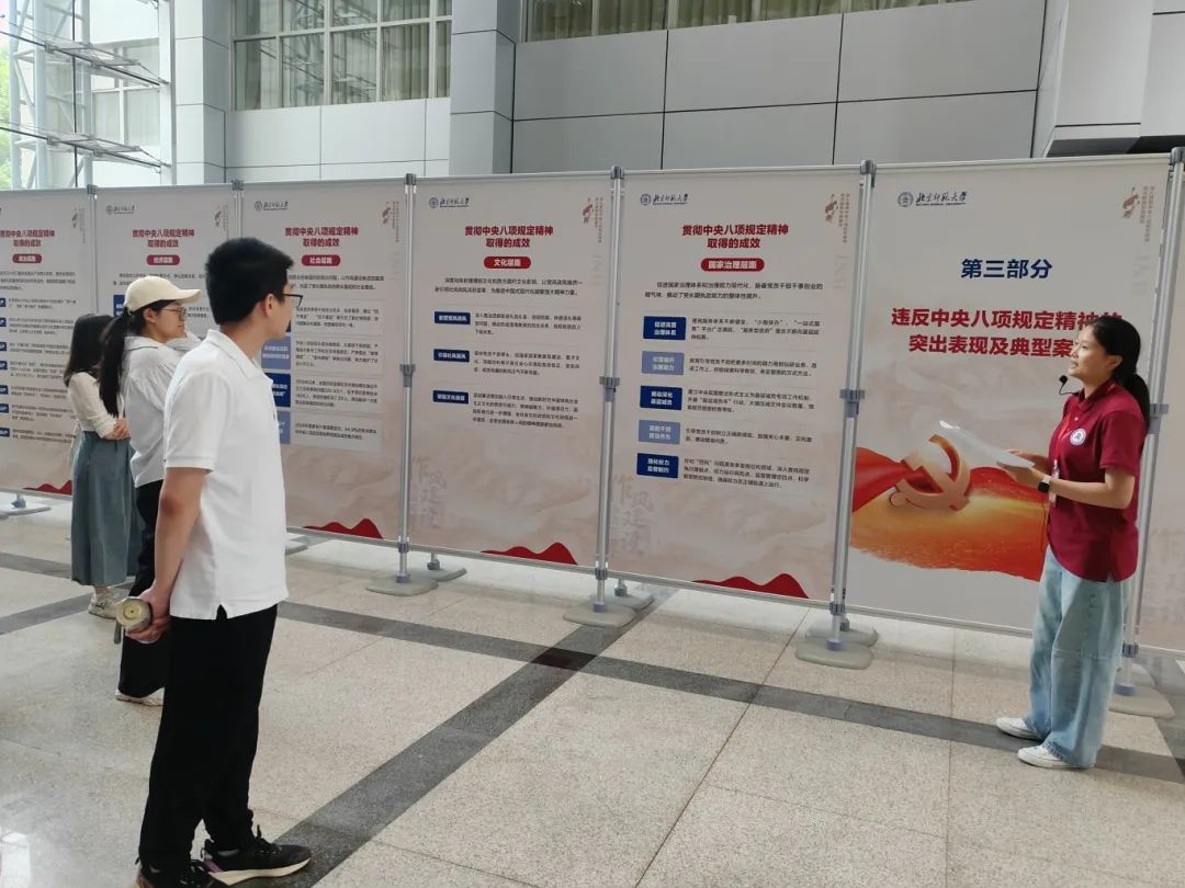 展览通过140块精心制作的展板,综合运用文字、图片、图表等多种形式,内容详实、案例生动、发人深省,系统解读了中央八项规定精神的核心要义与具体要求,整个展览既有理论高度,又有实践深度,既有正面引导,又有反面警示,是学校深入开展党纪学习教育、加强廉洁文化建设的重要载体。