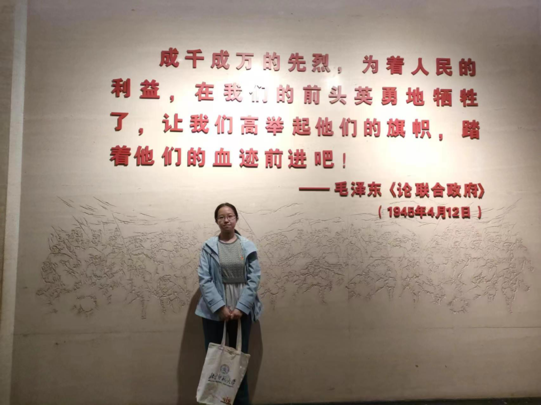 时值五四青年节,我随支部一起来到中国人民抗日战争纪念馆参观。刚一入馆,最大的感受是场馆内的光线不甚明亮,就好像彼时弥漫着硝烟的华夏大地,形势晦暗不明。若要身体行动起来,最要紧的是心灵的觉醒。于是乎,在危机四伏,剑拔弩张的时候,有志之士们纷纷挺身而出,他们奔走呼号,为的是能够唤醒国民的危机意识与斗志。我在展品中看到中华民族解放先锋队在北平师范大学成立时,制作的《我们的政治主张和基本态度》宣传品,那是学生们意识觉醒,爱国之心激荡的象征之一。当这些承载着国家未来的青年们站出来时,国家的希望之火正在此刻熊熊燃烧。