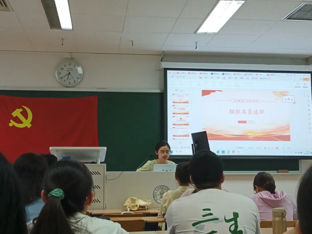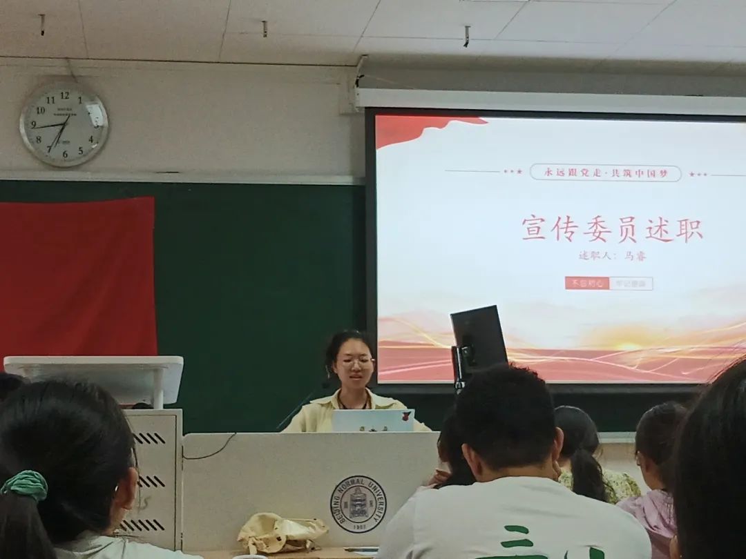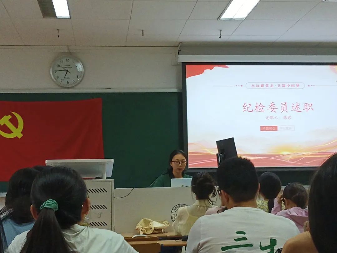 会议第二项,上一任支委进行工作述职。励学党支部前支部书记王宠惠同志对2023-2024学年励学党支部一学年的工作成就进行了总结。随后,组织委员边杨同志、宣传委员马睿同志和纪检委员韩君同志依次向党组织汇报了自己一年来的工作总结并对委员工作的未来发展做出展望。在工作汇报结束后,王宠惠同志邀请大家发表对励学党支部存在问题的看法。