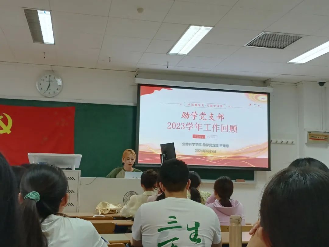 2024年6月5日18:30,励学党支部在艺术楼501教室顺利召开支委换届会。会议由王宠惠同志主持,讨论关于励学党支部支委换届问题。参会的正式党员共21人,有3名正式党员请假并递交了书面意见。