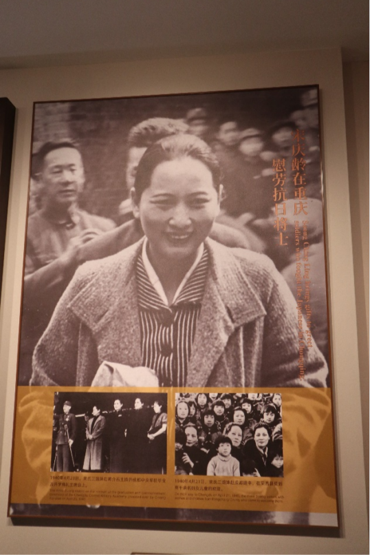 下图为宋庆龄同志在重庆慰劳抗日战士。