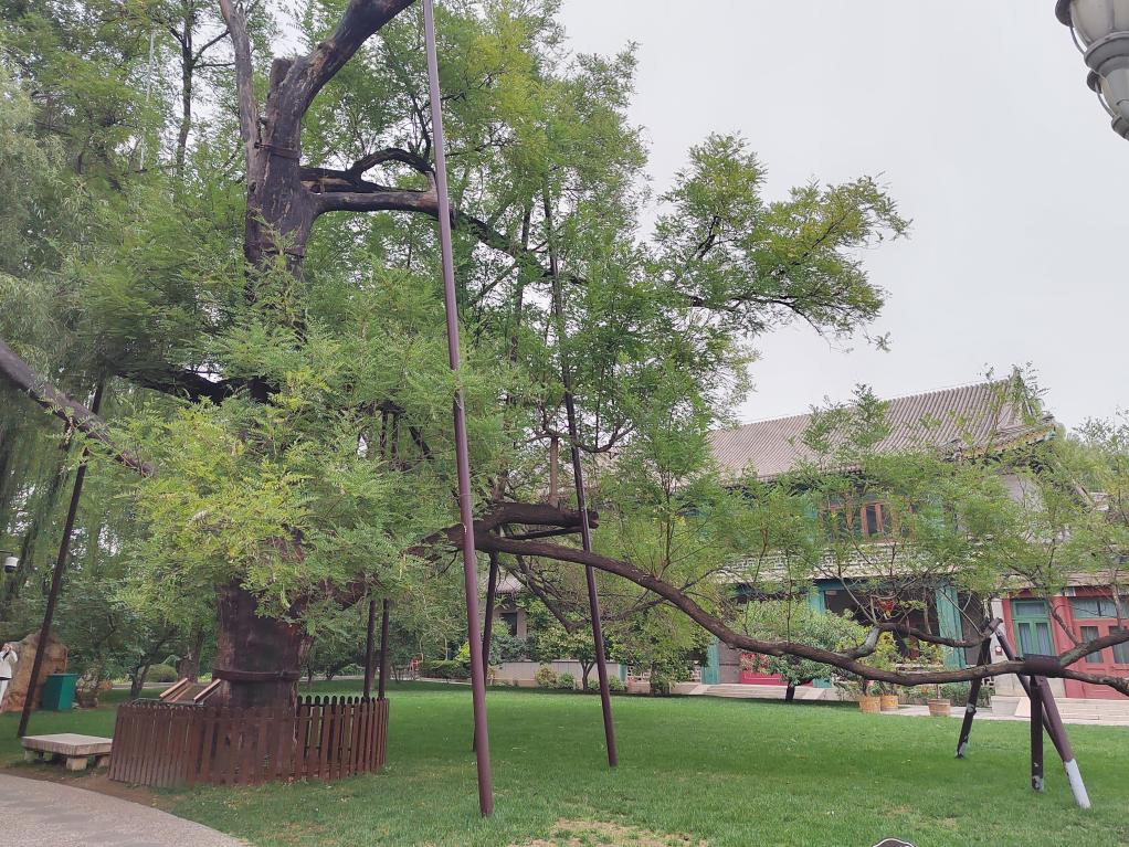 在层层绿色掩映之下,有一棵有500多年历史的古槐挺立在宋庆龄故居内。它西面的树干崛起向阳,枝条屏散,羽状的叶子十分丰满,东面的树枝则匍匐于地,形似欲飞的凤凰,宋庆龄同志生前十分喜欢这棵古槐,为其取名"凤凰国槐"。整整十八个春天,这棵凤凰槐,每时每刻都在她身边起舞。