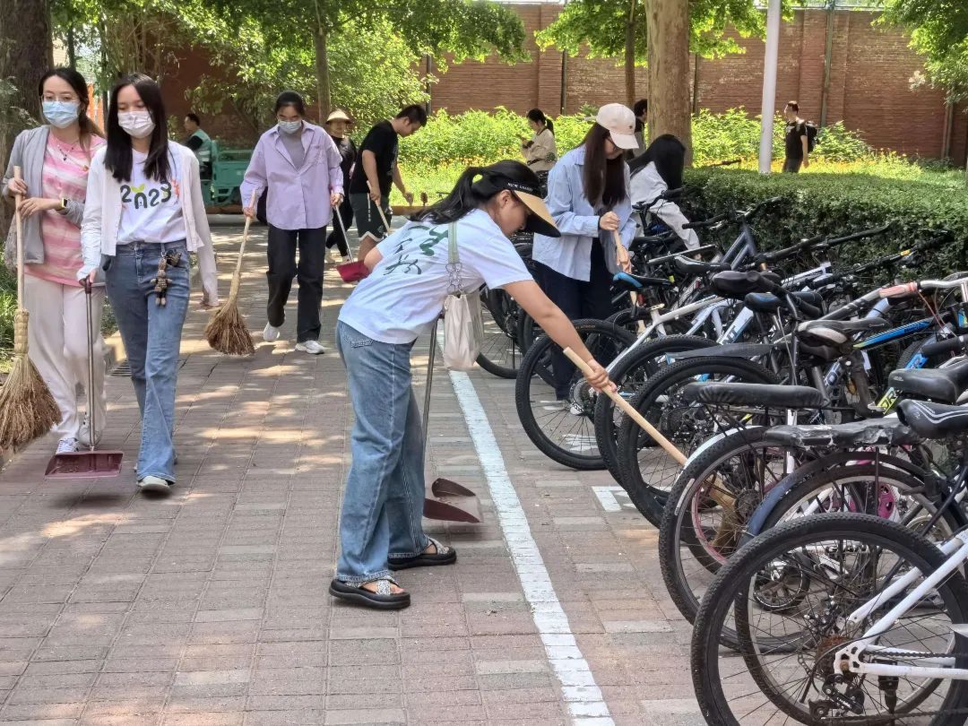 5月21日上午,我参与了“我为师生办实事”的校园清扫活动,在丁师傅的帮助下,我们对化学楼和学生公寓前自行车停放区域进行了清洁。崇德党支部与外文博学党支部的同学们分工合作,高效完成了清扫任务。看着整洁有序的自行车雨棚,我感受到了劳动创造价值后的喜悦,同时在实践中更深刻认识到团结协作的重要性。在清扫过程中,丁师傅给我们提供了一定的指导,他所传授的技巧让我们大大提高了清扫效率。在实践中不断发现问题和解决问题,应该践行到每一件小事中。