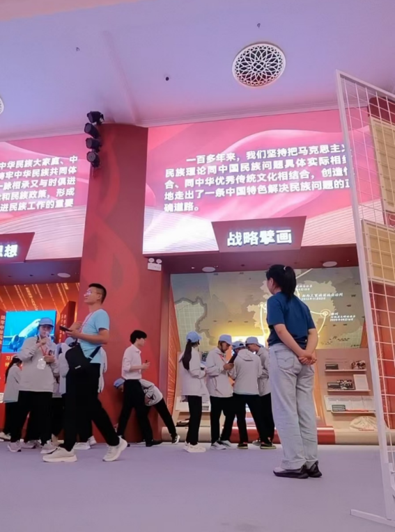 文化是一个国家、一个民族的灵魂。通过本次志愿服务活动,四位同志深入感受民族文化的魅力,通过引导互动,传播民族文化。展柜内的一件件展品,是全国上下各民族团结一心,共同努力的充分体现。未来我们也将继续行动,助力民族文化的传承、弘扬。