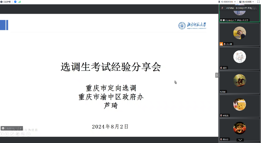 2022级博士党支部立足党建业务相融合,服务学科建设,服务社会需求,服务国家战略,2022级博士党支部搭建同顶尖学者、优秀学生交流学习平台,探索党建引领科研与就业的创新路径,举办“薪火相传 生生不息”系列讲座。为助力同学们实现更加充分的高质量就业,冰球突破豪华版官方网站2022级博士党支部于2024年8月2日举办“薪火相传 生生不息”之选调经验分享会,邀请在今年选调生考试中取得卓越成绩的优秀毕业生唐志珍和芦琦,亲述选调生考试的最新考情、职位选择、备考方法等方面的宝贵经验,讲座面向学院全体学生。