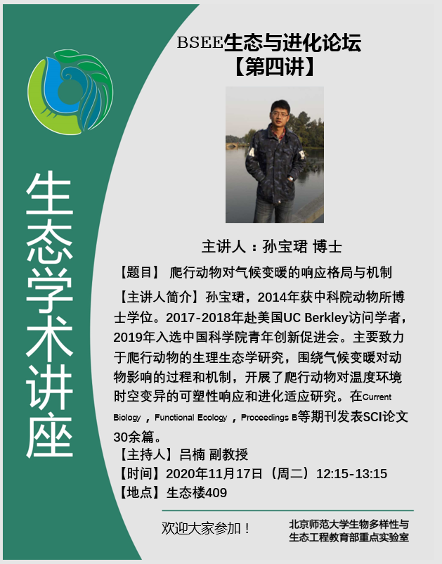 【讲座】BSEE论坛:爬行动物对气候变暖的响应格局与机制