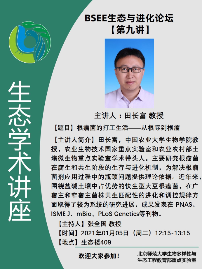 【讲座】BSEE生态与进化论坛 :根瘤菌的打工生活——从根际到根瘤