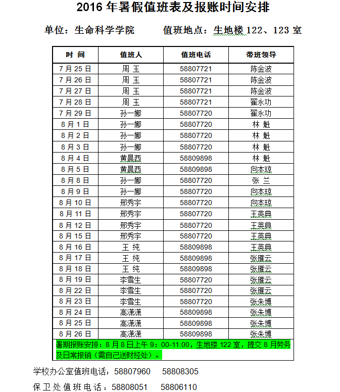【通知】学院2016年暑期值班表和暑期报账安排