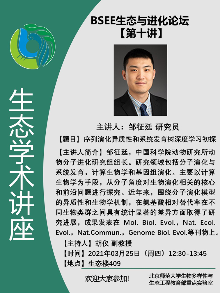 【讲座】BSEE生态与进化论坛(第十讲):序列演化异质性和系统发育树深度学习初探