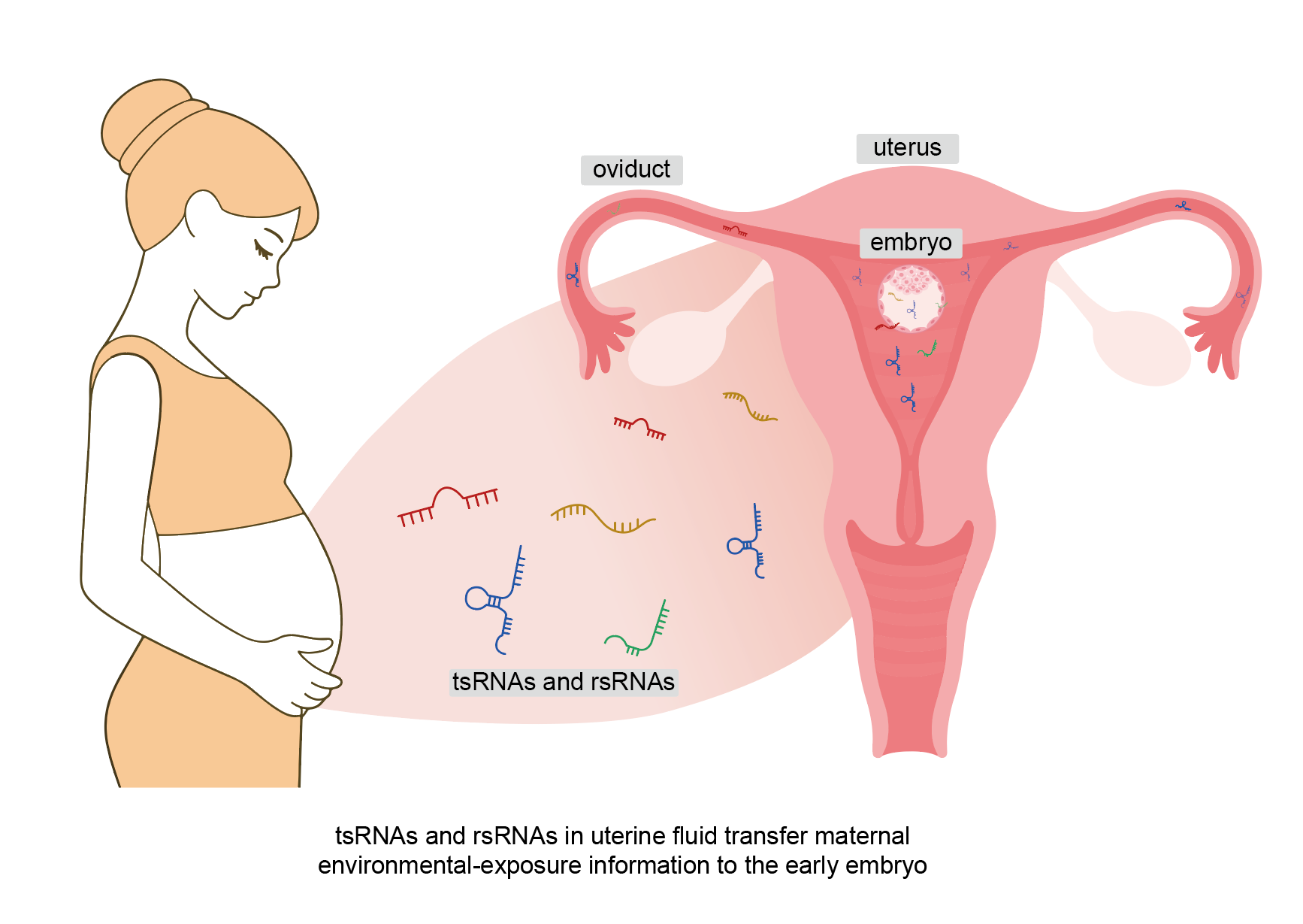 前期张莹、侍骏超参与的Science研究首次发现精子 tsRNA 可传递父源代谢信号(Science 2016),并于2018 年在 Nature Cell Biology 揭示了 RNA 修饰在其中的关键作用。这些研究建立了“配子小 RNA 介导环境信息传递”的基础框架。基于妊娠建立研究中发现宫腔液体对于早期胚胎发育和妊娠建立的重要调控作用,2017 年他们提出宫腔液可能承载孕早期母体环境信号的非编码小 RNA(Trends in Molecular Medicine 2017),但缺乏直接证据。如今,这一假设终于迎来实验验证。