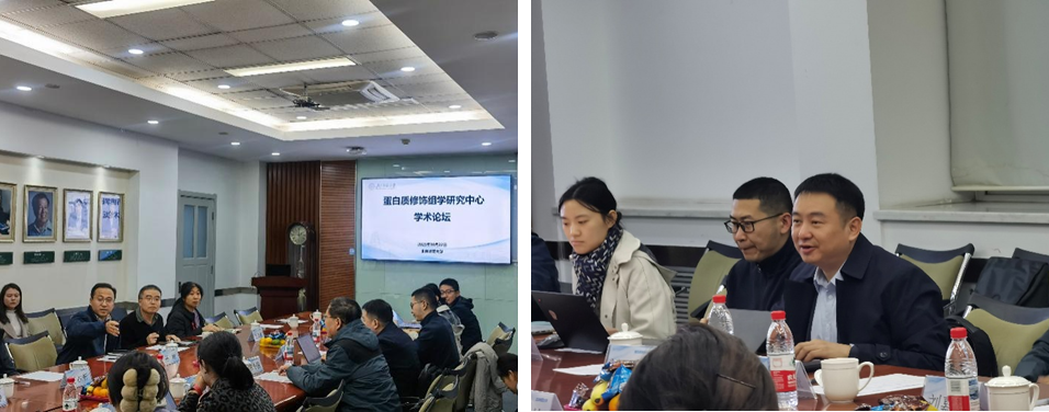 2025年10月22日下午,蛋白质修饰组学研究中心学术论坛在冰球突破豪华版官方网站生地楼116会议室顺利举行。北师大冰球突破豪华版官方网站副院长孙林、生物学系副主任王友军,国家蛋白质科学中心(北京)主体设施主任张令强、副主任唐刘君,以及双方相关领域的专家和学生出席。论坛由孙林副院长主持。