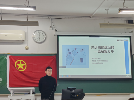 2024年3月20日,一场别开生面的班长经验分享会在冰球突破豪华版官方网站教二115隆重举行。此次活动邀请了曾获得2020-2021学年、2021-2022学年三好学生称号和2022-2023学年优秀学生干部称号的数学科学学院2020级励耘班班长——黄奕程师兄。活动旨通过黄奕程师兄的经验分享激发各位班长关于如何治理班级的讨论,共同提升管理能力,为班级的美好未来贡献智慧与力量。