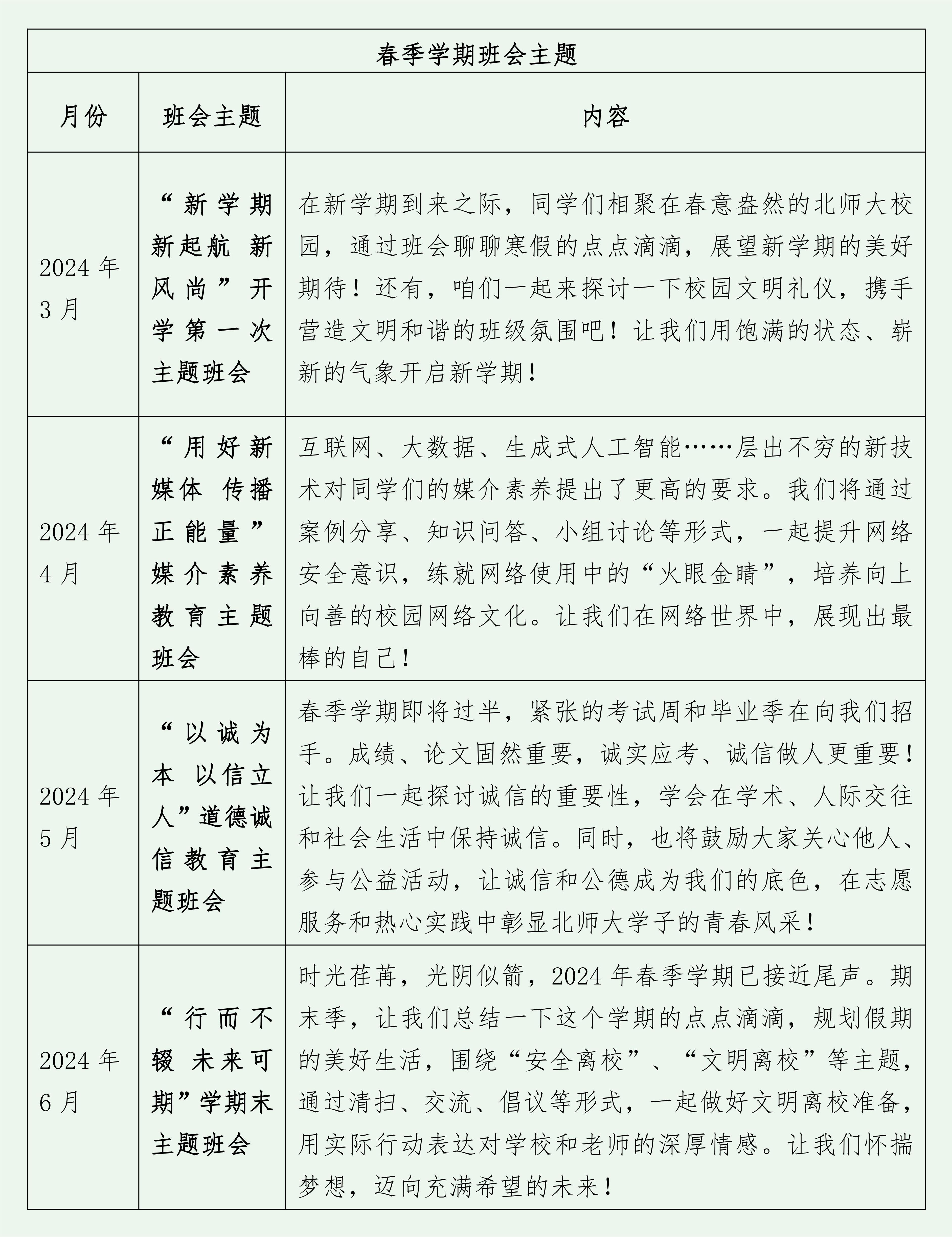 2023-2024学年春季学期班级建设工作方案