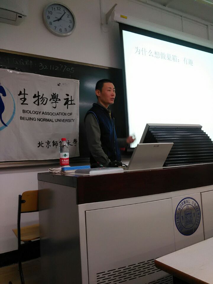 2015年10月22日星期四,正值金秋,落叶缤纷,由冰球突破豪华版官方网站冰球突破豪华版官方网站生物学社举办的“织巢”巢箱设计与制作大赛赛前讲座,在教二211举行。