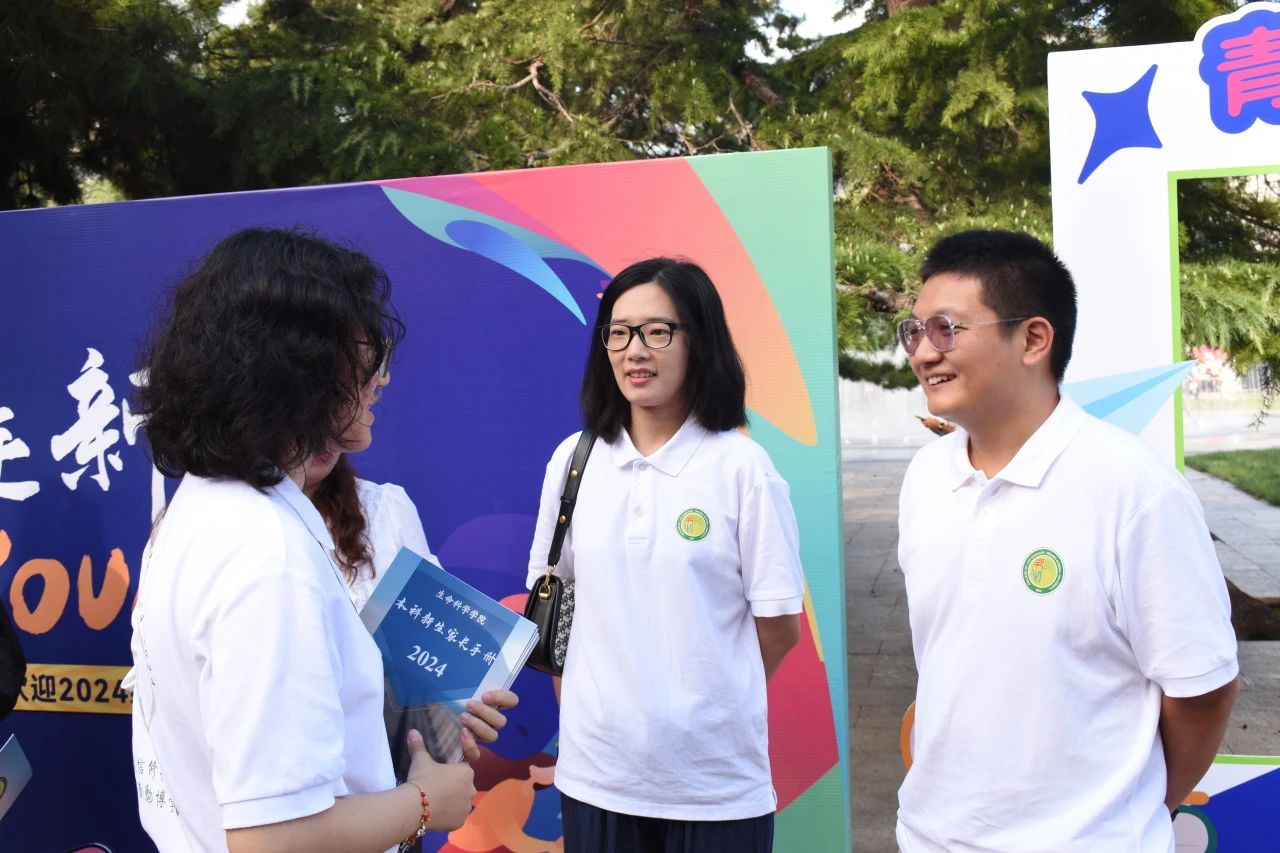 早上八点,学院的领导和老师们来到了迎新点,看望陆续到来的新生和志愿者们。学院党委书记王天明老师、院长窦非老师、副院长兼2024级励耘班班主任董路老师、副院长廖万金老师、副院长席超老师、党委副书记殷实老师、党委副书记兼2024级强基班班主任商瑜老师、生态系系主任邓文洪老师、2024级本科1班班主任张博文老师、2024级本科2班班主任褚晓琳老师、学院团委书记兼2024级本科3班班主任唐如春老师在迎新点与新生们亲切交流。