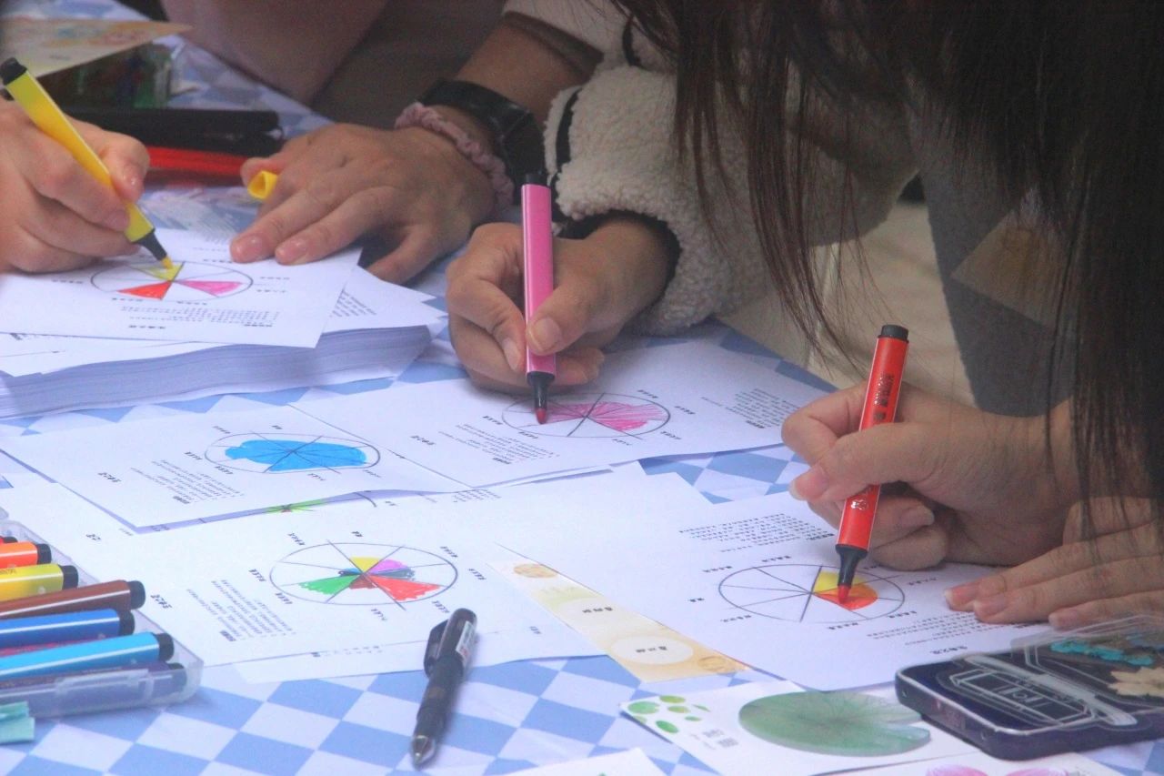 在提供的生命平衡轮活动纸上,按照上面的指引,结合自己目前生活状态绘制出属于自己的生命之花,复盘当下的情况,规划如何更全面地绽放生命,野蛮生长。