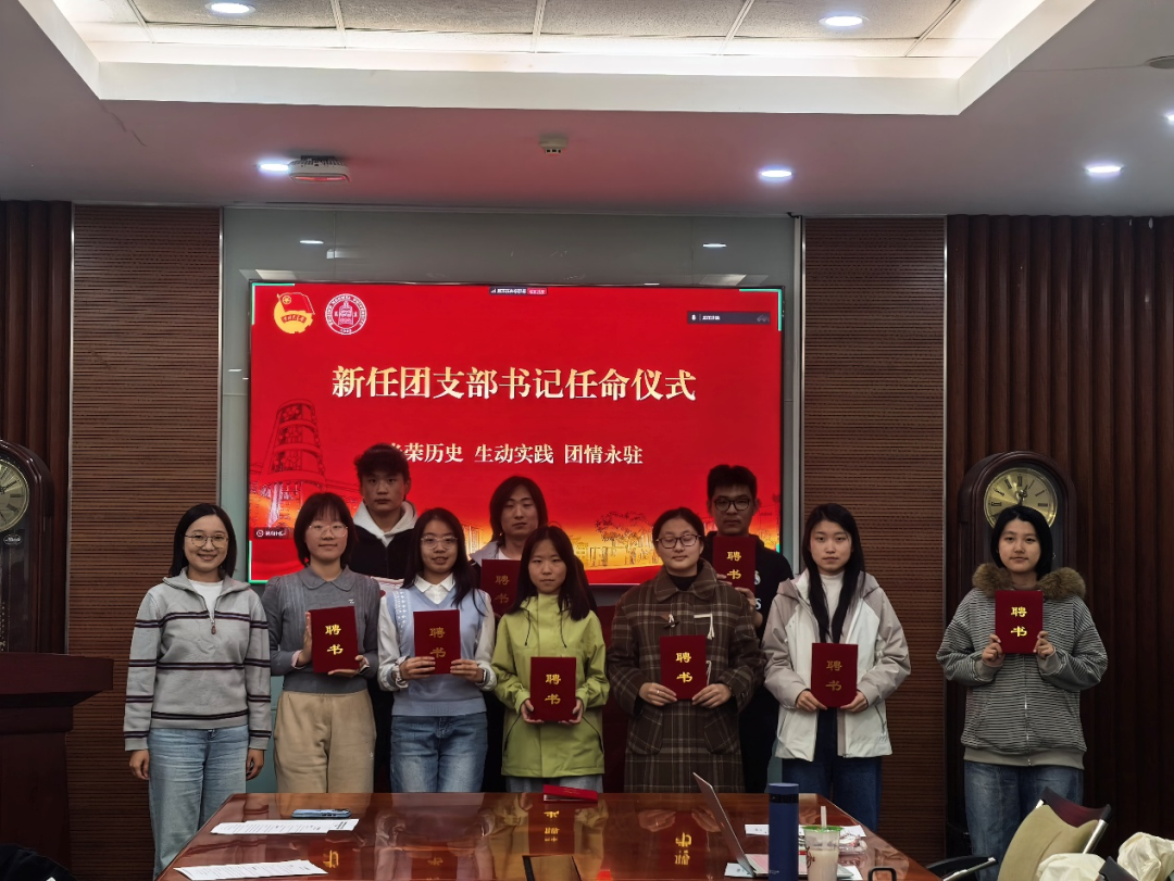 会议初始,举行了2025级新任团支书的任命仪式,唐老师为10位2025级新生团支书颁发了聘书。