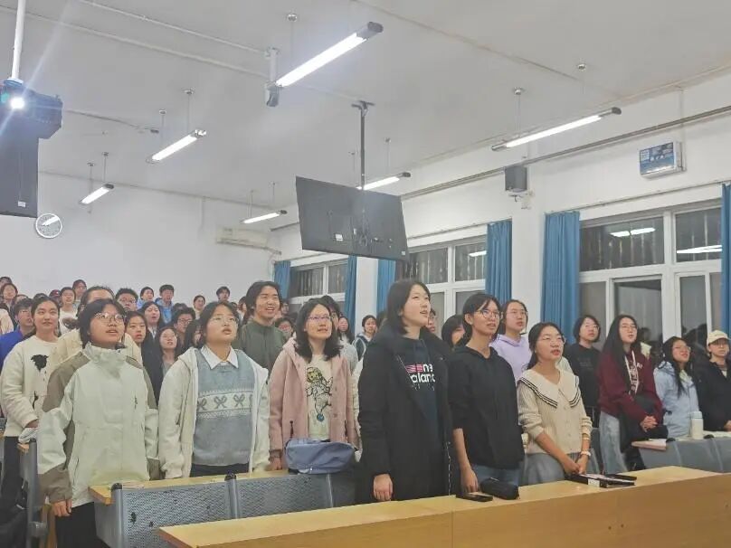 在主持人宣布活动开始后,全体成员首先齐唱共青团团歌《光荣啊,中国共青团》。众人铿锵有力的歌声,迅速点燃了现场的氛围。