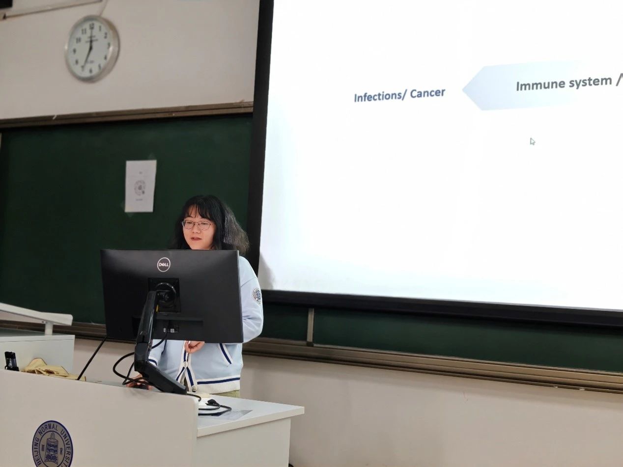 楚晓菁老师结合其博士和博士后期间的研究成果,围绕“人类免疫功能和免疫相关疾病的调控”这一科学问题,与同学们展开交流。