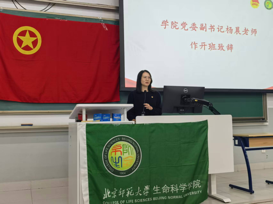 接着是学院党委副书记杨晨老师作开班致辞。杨晨老师以学校第十四次党代会中提出的“卓越文化”、“参与文化”、“规则文化”为切入点,深情地表达了对新同学的期望和鼓励,让每一位新同学都感受到了学校和学院的温暖和关怀。