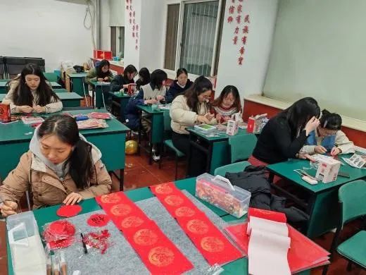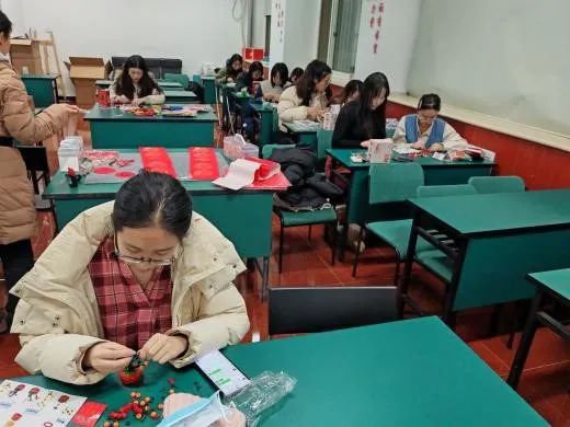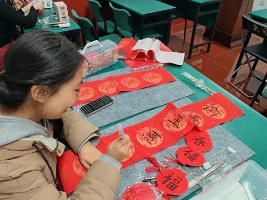 活动现场氛围热烈,众多同学热情参与:有同学忙着写春联,将美好的祝愿挥洒在纸上,有同学精心制作灯笼,为节日增添喜庆的氛围,还有同学在制作龙年拼豆。大家通过各种方式表达对新一年的美好期盼。