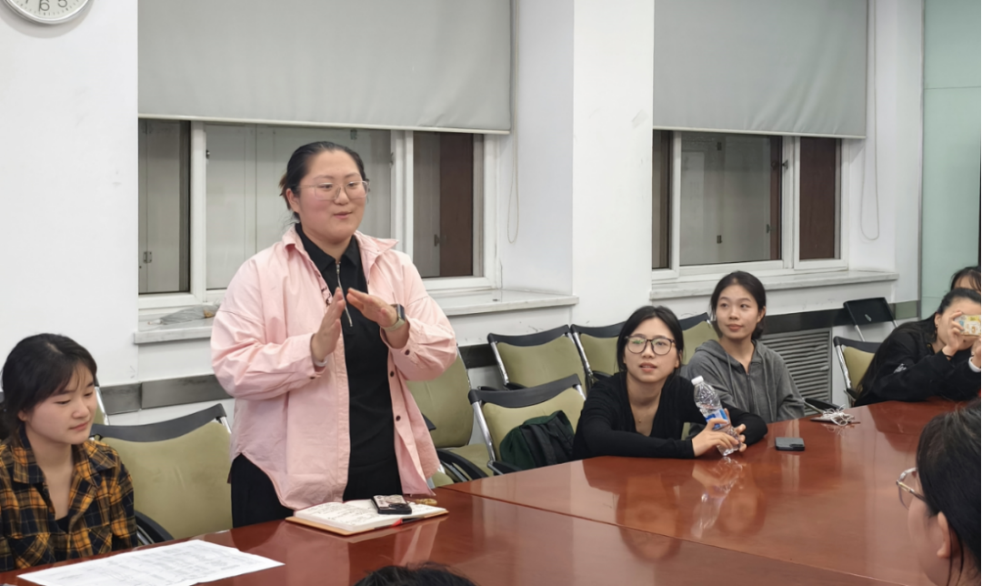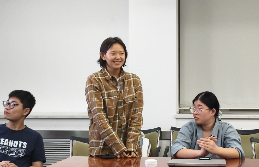 随后研会主席团成员蒋茂婷、李若瑜依次进行自我介绍。蒋茂婷分享了自己过去一年在研会工作的成长与感悟,表达了对新学期的美好期待。李若瑜则指出去年工作中存在的一些问题,勉励新成员们再接再厉,积极创新。