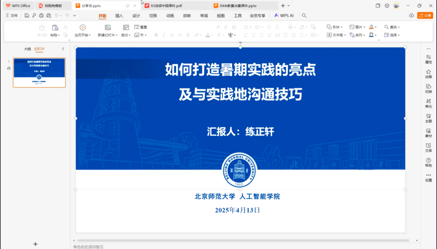 此次暑期社会实践经验分享会,不仅让同学们收获了丰富的知识和经验,加深了对支教及调研项目的了解,更让大家切实感受到团队合作与实践探索的强大力量,为同学们的实践之路提供了有力支持和指引。相信以此次分享会为新起点,同学们能在未来的暑期实践中不断学习、成长,取得更加优异的成绩。期待在后续的活动中,同学们能继续积极参与,共同进步。
