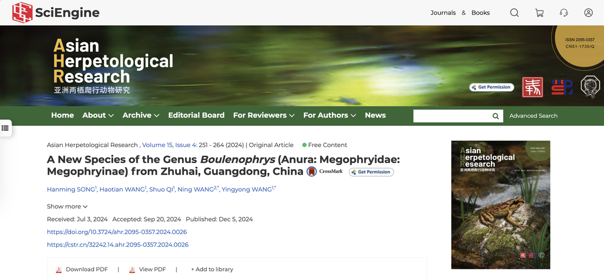 日前,科研人员在金湾区高栏岛发现角蟾科布角蟾属新物种,将其命名为“高栏岛角蟾”(学名:Boulenophrys gaolanensis)。该研究结果于今年12月在《亚洲两栖爬行动物研究》期刊上发表,新物种的发现使得目前学界公认的布角蟾属物种数量达到70种。