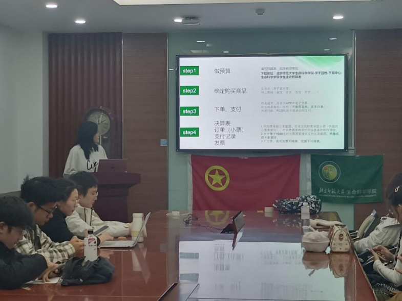 会议开始,由闫玥锦老师面向各班团支书、学生团体负责人专项讲解了活动物品费用报销的全流程。讲解过程中,闫老师着重强调了事前预算审批的关键性,并对手工发票的规范性、报销材料的完整性等常见易错点进行了细致说明。她指出,熟练掌握报销流程不仅是学生骨干的基本功,更是提升工作效率、保障集体权益的重要一环,希望大家认真领会、规范执行。