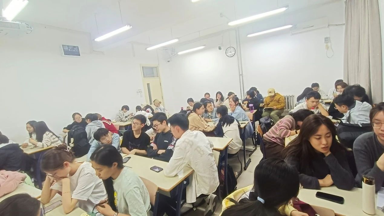 同学们在活动前自行组队,分为12组,组长上前抽取题目。题目中不仅有当下热点“国家版减肥指南”“搭子社交”“外接大脑人工智能”等问题,也有“爱国主义教育的仪式化困境”等紧扣红色历史,传承红色精神的话题。对如此丰富的话题,同学们摩拳擦掌,跃跃欲试,积极讨论,珠玑频落。各个小组认真查阅资料、记笔记、完善论证、决定演绎形式,为接下来的展示环节做着准备。