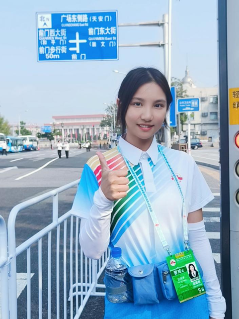 我们见证过天安门广场凌晨的静谧,目睹长安街映着星光的夜晚,曾在演练时在暴雨中向观礼人群挥手致意,也在9月3日当天沐浴过破晓时那缕温暖阳光。我的岗位位于前门东大街,负责引导和欢迎观礼嘉宾,虽然是个“小角色”,但每当看到嘉宾们回应以热情笑容、听到那一句句发自肺腑的“辛苦了!”,所有的汗水与努力,瞬间化作值得。