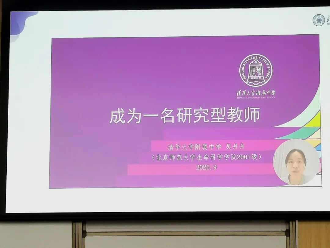 2001级本科校友吴丹丹以视频方式带来“努力成为一名研究型教师”的主题分享。作为清华大学附属中学的骨干教师,她围绕“是否当中学教师”“能否胜任中学教师”“如何成为中学教师”三个问题,结合一线从教经验,深入剖析中学教师的职业特性、工作内容与岗位要求,并为在校生提出建议:“学好专业课程、培养自主学习能力,多参与教育实践、学生工作及大型活动”。