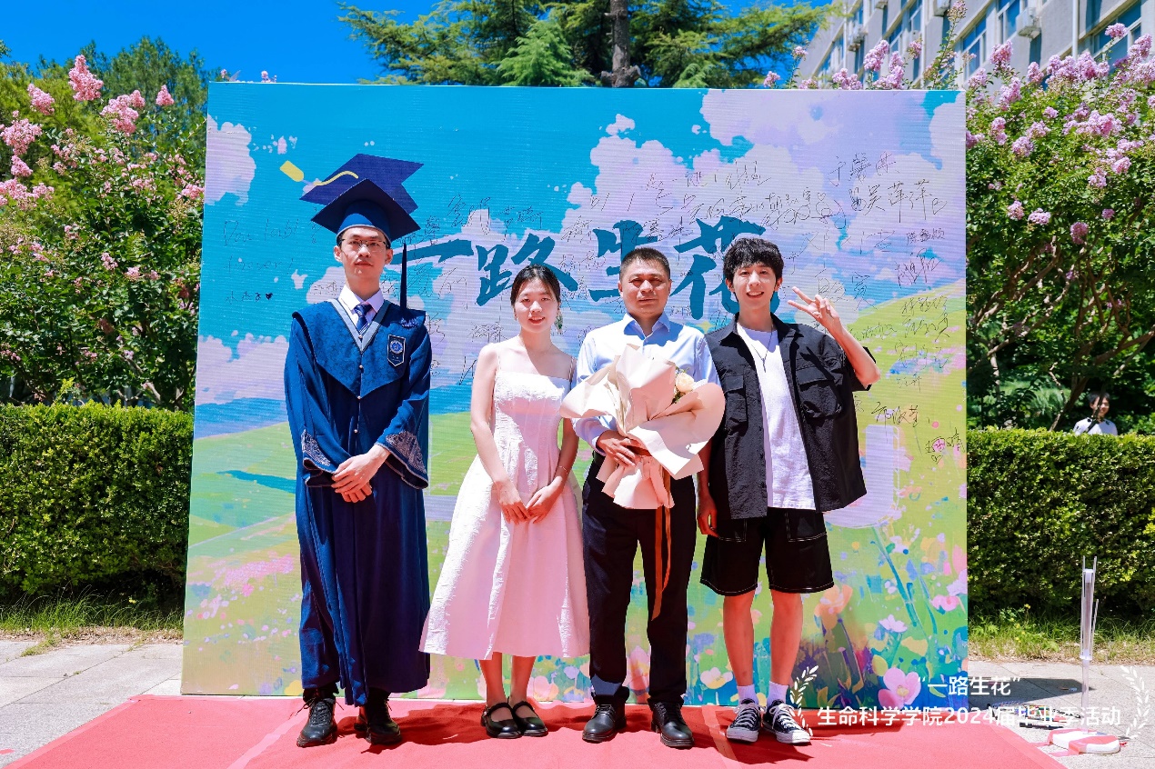 毕业典礼和毕业合影留念结束后,2024届毕业生换上了靓丽帅气的服装,来到了生科院前广场的红毯仪式现场,迎接这份独属于他们的毕业之路。于馨淇、金紫怡、于涵三位毕业生担任红毯仪式主持人。