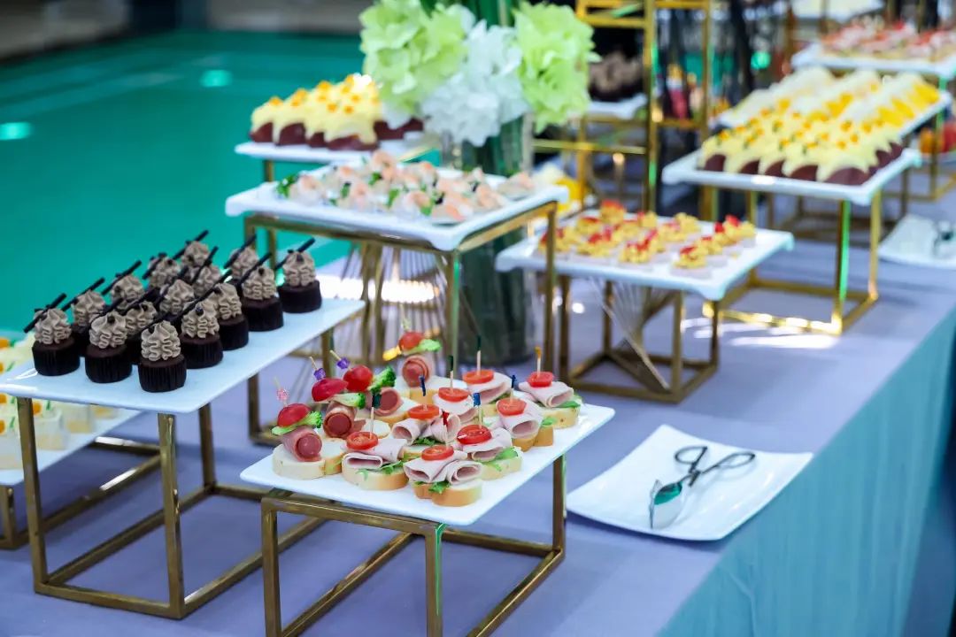 在红毯仪式圆满落幕后,学院在多功能厅为毕业生们举办了一场温馨的惜别冷餐会。会场经过精心布置,处处洋溢着浓浓的毕业氛围。学院特别准备了各式精致糕点、清爽软饮、水果等轻食,让同学们在轻松愉悦的氛围中畅叙同窗情谊,共话美好未来。