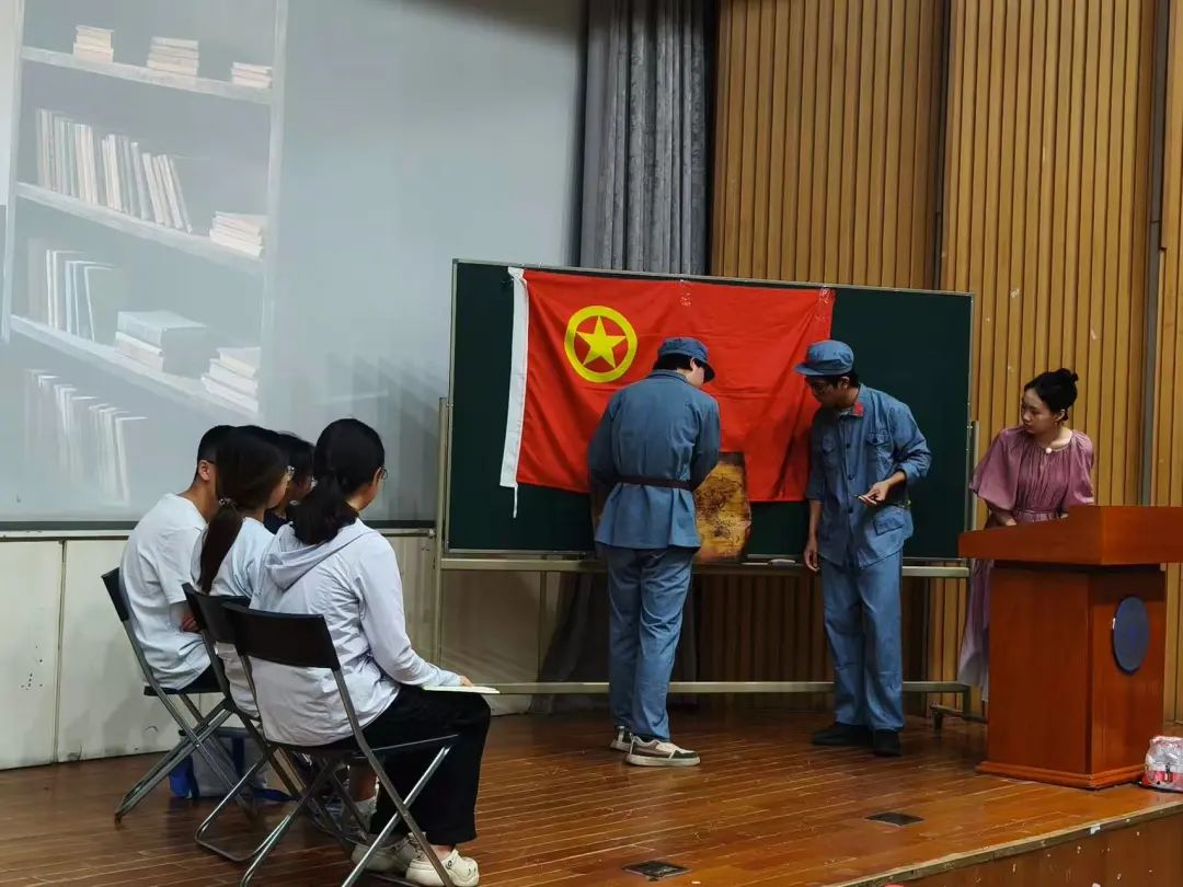 八十五年前的今夜,南京城墙在炮火中震颤,长江水倒映着血色残阳。但您将看到的不是绝望——而是一群衣衫褴褛、眼含星火的中国人!他们当中有学生、工人、军人、华侨,有人手握钢枪,有人怀揣雷管,有人以笔为刀。2023 级本科1班团支部用舞台剧《烽火长歌》开历史的重门——见证九颗赤子之心,如何照亮 1937 年的长夜!演员们用生动的表演,展现了那个年代人们的坚韧与不屈,让我们看到了在黑暗中闪烁的希望之光。